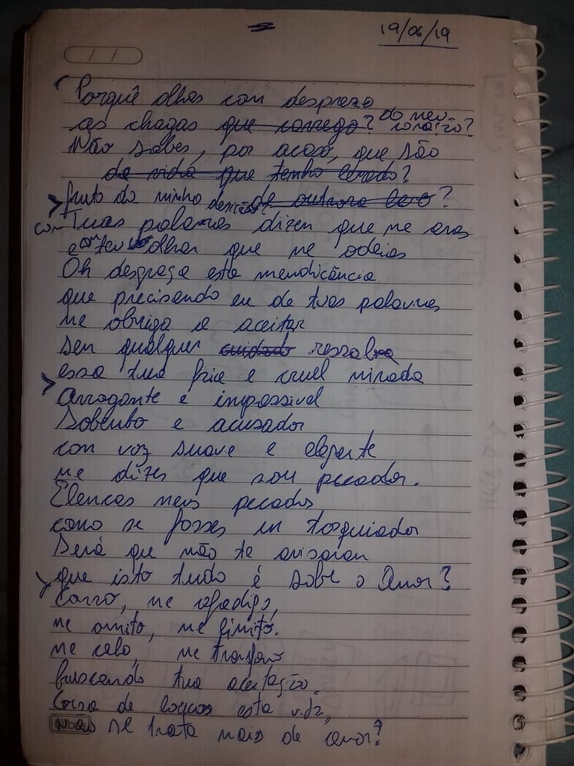 Algumas linhas do poema as revisaria. Em especial aquela que diz “São fruto da minha decisão” já que aprendí neste último mês que era impossível eu decidir diferente.